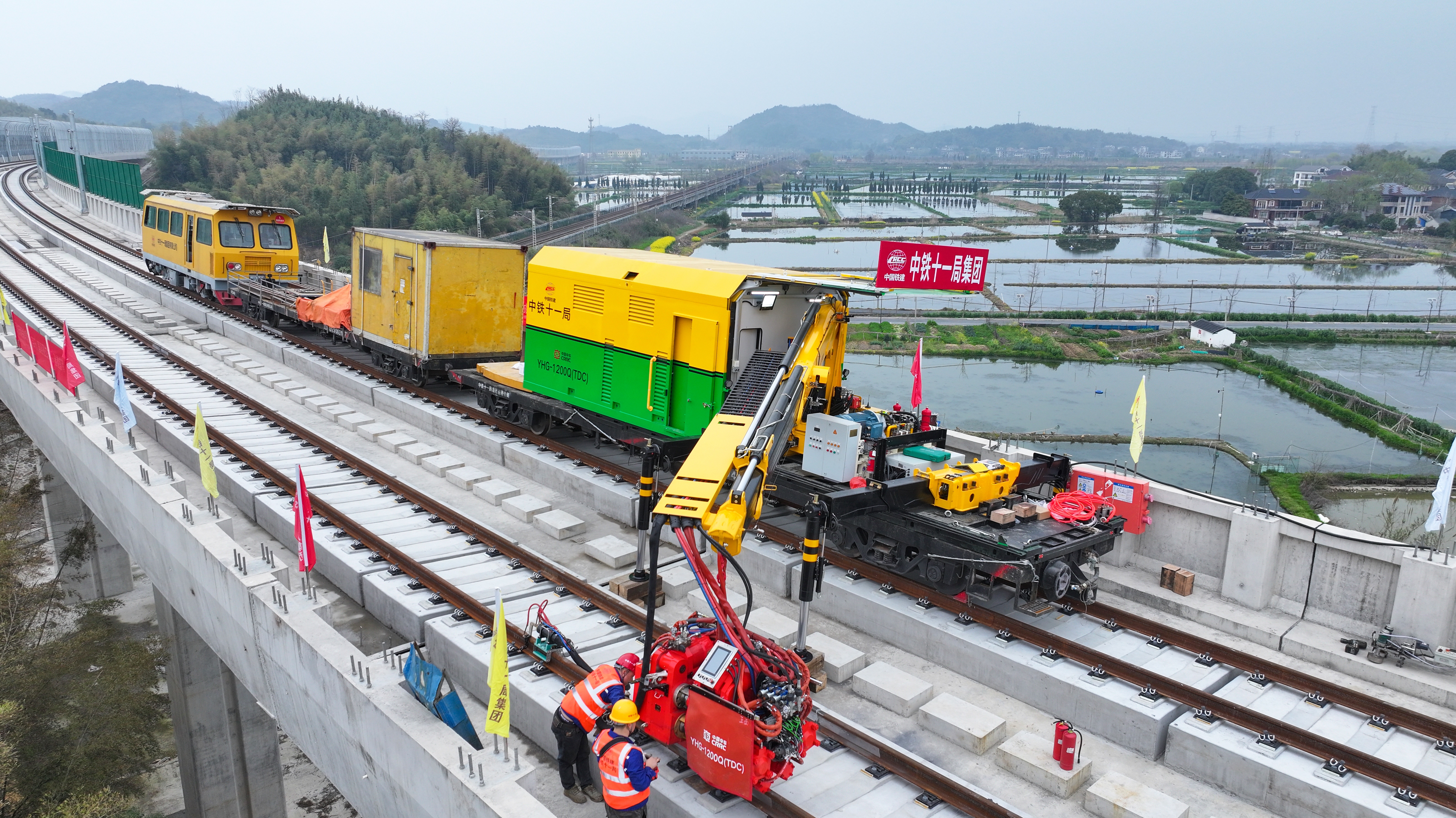 由中国铁建所属中铁十一局取中车戚墅堰机车车辆研究所结合研制的YHG-1200Q型新能源多场景闪光焊轨机投入利用,正在杭德市域铁项目德清段施工现场,3月22日,支撑“边充边焊”模式。这也是国内首台集新能源动力取全场景功课于一体的铁焊轨配备。此外,